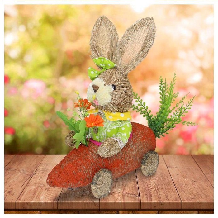 Coelho Fêmea De Palha Páscoa Carro De Cenoura Decoração 33cm -