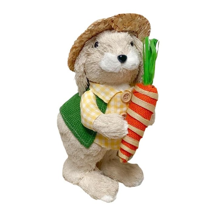Coelhor em Pé com Chapéu de Palha e Cenoura 27cm