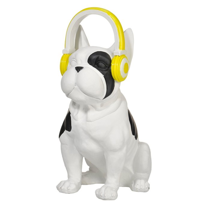 Cofre Cachorro Sentado com Fone Médio em Cerâmica - 34x27 cm