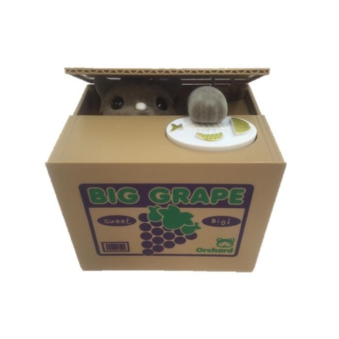 Cofre Cofrinho Gato Gatinho Cinza Ladrão Rouba Pega Moedas