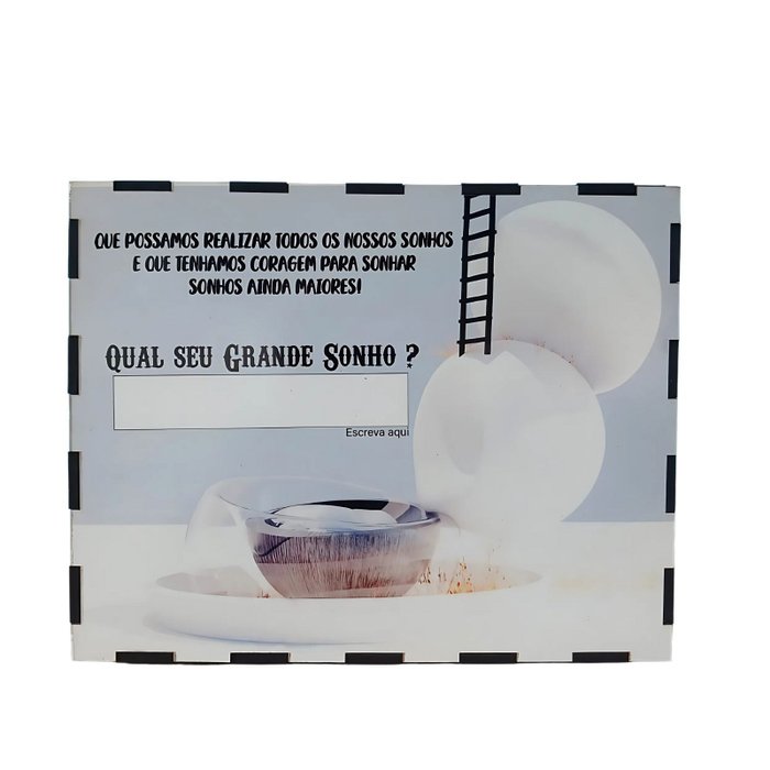 Com sua estrutura elegante em MDF e um design único, o cofre oferece uma maneira inovadora de acompanhar cada passo rumo à realização do seu maior sonho, seja ele uma viagem, a compra de um carro, a construção de um projeto pessoal ou qualquer outro desejo que esteja guardado no seu coração. Cada depósito é uma vitória, um marco no seu caminho.