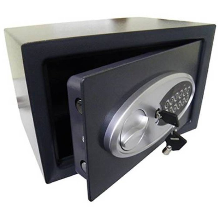 Este Cofre Eletrônico Com Teclado De Senha Para Abertura,É Indispensável Para Guarda Objetos De Valores Como Jóias, Relógio, Dinheiro E Coleta De Valores Em Locais Onde É Necessário Maior Segurança.Possui Corpo Em Chapa Reforçada E Duas Travas De Ferro Maciço Cromadas.