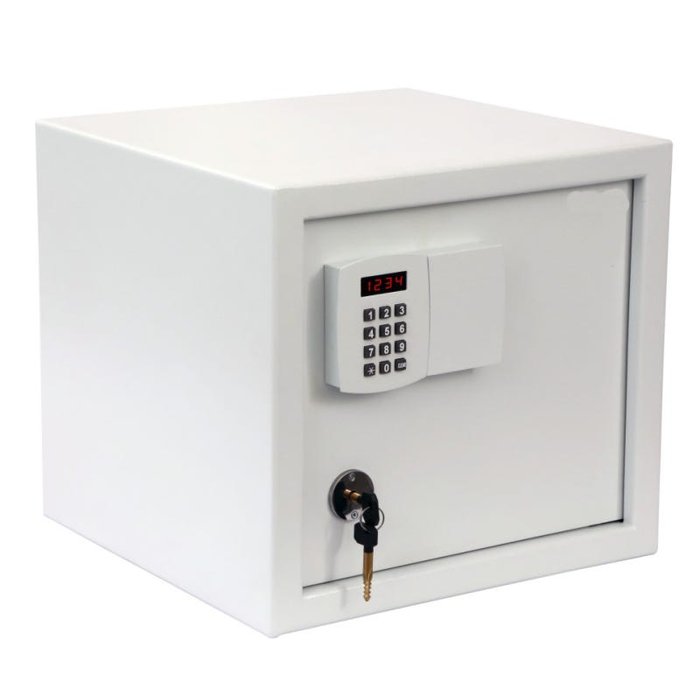Cofre com sistema de abertura e fechamento eletrônico a partir de display digital com proteção adicional por meio de fechadura com chave tetra. Permite tranquilidade e confiabilidade em seu uso quando há necessidade de acesso de dois usuários ou mais, onde apenas um detém a senha numérica, resguardando com segurança os objetos de valor em seu interior.