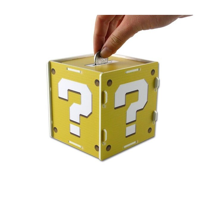 Junte aquela graninha no Cofre Interrogação Mario Bros. Pra você que é geek até pra juntar dinheiro!Use na decoração do seu ambiente com muita personalidade e estilo gamerEspecificaçõesDimensões: 9,5 cm x 10 cm x 10 cmPeso: 0,160 kgCores: Estampa em diversas coresMaterial: Plástico com impressão digitalInstruções de lavagem: Pano úmido, não usar produtos de limpeza.*Montagem de encaixe.