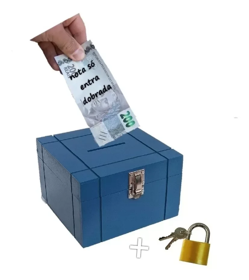 ATENÇÃO! fotos meramente ilustrativas; o cofrinho é projetado para colocar moedas de até 1 Real e notas de até 200 reais portando dobradas não e possível colocar as notas abertas tem que dobrar!! também pode ser usado para pequenas economias não recomendamos usa-lo como cofre caixa forte (guardar objetos de grande valor jóias; ouro etc..)
