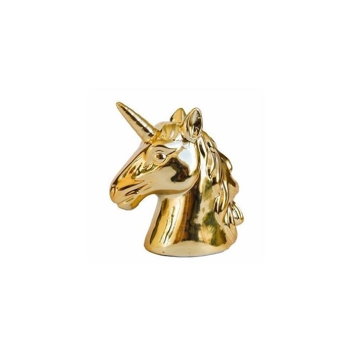 Cofre de cerâmica temático de busto de unicórnio na cor dourada, tamanho P.