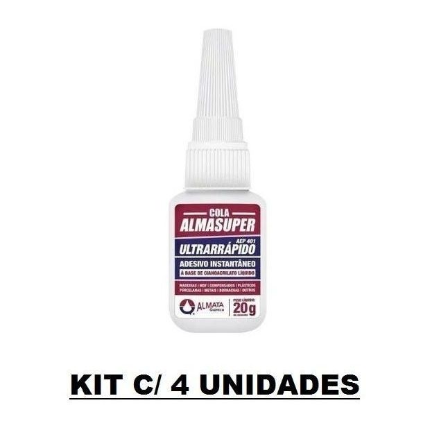 Cola Almasuper 20g Adesivo Instantâneo Ultra Rápido com 4 Un Incolor (Transparente)
