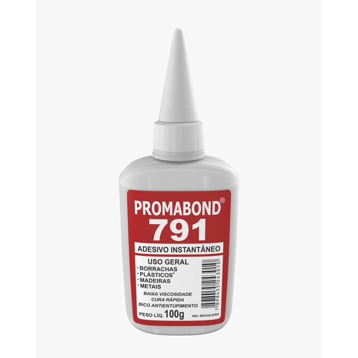 O Adesivo Instantâneo Promabond 791 possui bico antientupimento e aplicação precisa. É ideal para a colagem de borrachas, plásticos, madeiras, metais e muito mais. Pode ser usado em diversos tipos de aplicações, na indústria automobilística, indústria calçadista, fabricação de móveis e indústria madeireira em geral, fabricação, montagem e fechamento de embalagens, indústria eletroeletrônica, fabricação de eletrodomésticos, indústria têxtil, manutenção industrial, artesanato, hobby modelismo, consumo, entre outros. Seu tempo de fixação é de 5 a 20 segundos dependendo do substrato.