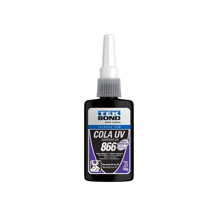 Especialmente projetada para a colagem de vidro com vidro, ou de vidro com metal, a cola uv 866 tekbond é uma cola ultravioleta de alta resistência, ideal para fabricação de móveis de vidro, prateleiras, balcões de vidro, troféus, entre outros. proporciona uma aplicação com baixo odor, cura rápida, excelente resistência à umidade e acabamento transparente.