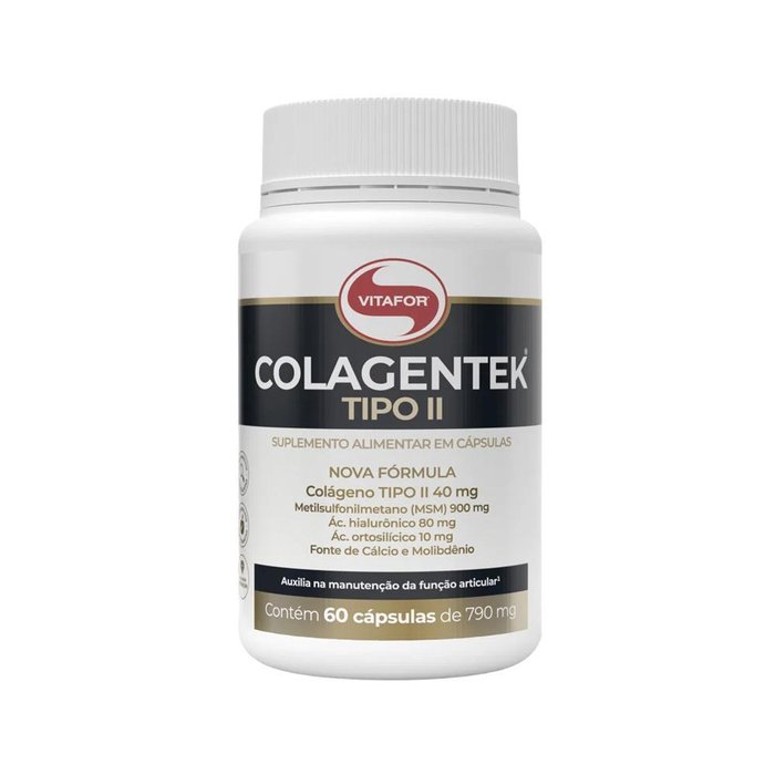 Colagentek tipo ii vitafor, é um suplemento de alta tecnologia, composto por colágeno tipo ii. Traga a flexibilidade para sua vida estima-se que 20% da população sofra com algum problema nas articulações. Seja pelo sobrepeso, pela prática de uma atividade física ou o processo de envelhecimento, nossas articulações são exigidas durante toda a vida e tendem a se comprometer com o passar dos anos. As articulações garantem a movimentação do esqueleto. Articulações saudáveis possibilitam caminhar, abaixar-se, levantar-se. Quando as articulações estão desgastadas sentimos dores e perdemos a amplitude de nossos movimentos. Não é possível impedir a natureza do corpo humano e suas particularidades, mas podemos envelhecer de forma mais saudável através da atividade física, nutrição eficiente e suplementação necessária para complementar a falta de nutrientes.