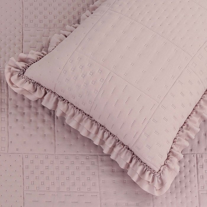 Colcha Babado Casal Fluffy 3pçs Rosé Rosé