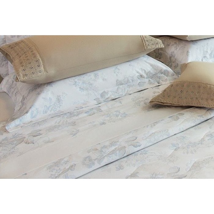 Jogo de Colcha estampado em tons harmônicos e delicado tecido Percal Premuim 200 fios. Possui 3 peças, sendo uma colcha e dois porta-travesseiros.