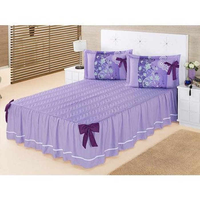Colcha Bruna 5 Peças Para Cama Casal Lilás Com Babado