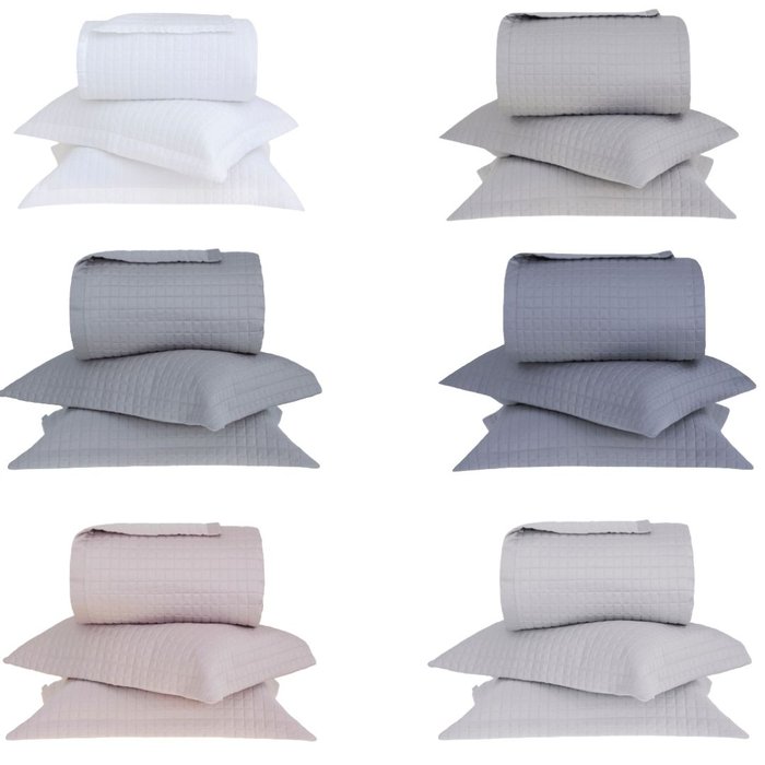 A colcha Bud Vision New Colors é produzida em tecido cetim 270 fios 100% algodão de excelente qualidade. Enchimento 100% poliéster. Dupla face. A coleção Bud Vision New Colors da Buddemeyer é produzida em tecido cetim que proporciona o toque acetinado. A sofisticação se dá pelo fino acabamento nas peças, cores e brilho dos tecidos. Todo em micro matelassado com mini quadrados. Porta travesseiro com abas e acabamento requintado. Colcha com fino acabamento. A Buddemeyer é referência em qualidade e estilo.