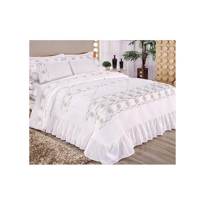 Colcha Casa Elegancia Queen Bordada - 5 Peças - Branco