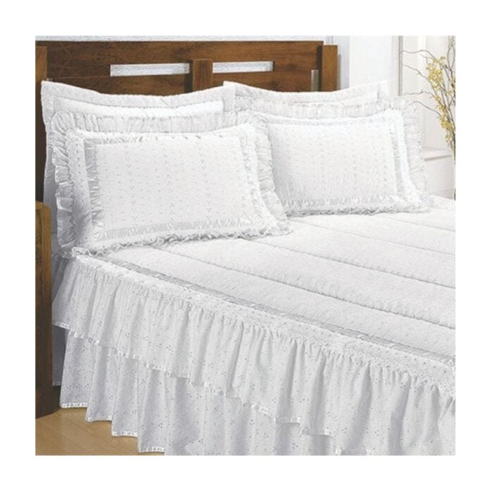 Colcha Casa Show Lese Casal Queen com Babado Duplo 07 Peças - Branca