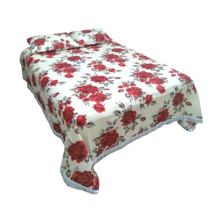 Colcha Casal Linhão Com Franja:Flor vermelha