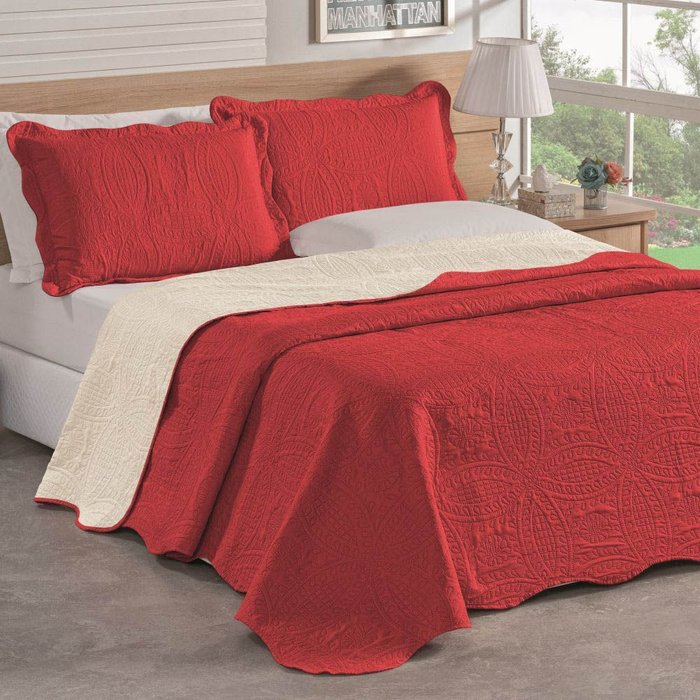 Colcha Casal Padrão Bella Dupla Face 03 Peças - Vermelha
