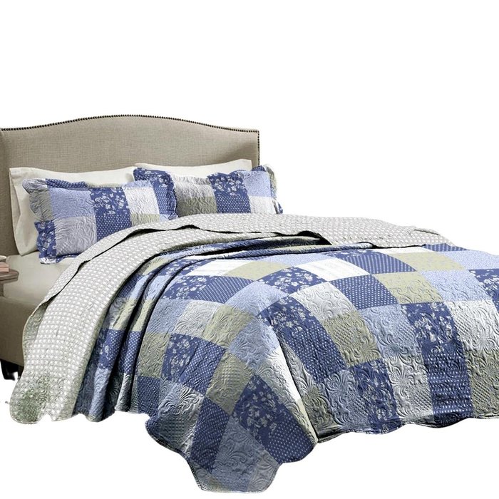 Colcha Casal Padrão Dupla Face Azul Texturizado Patchwork