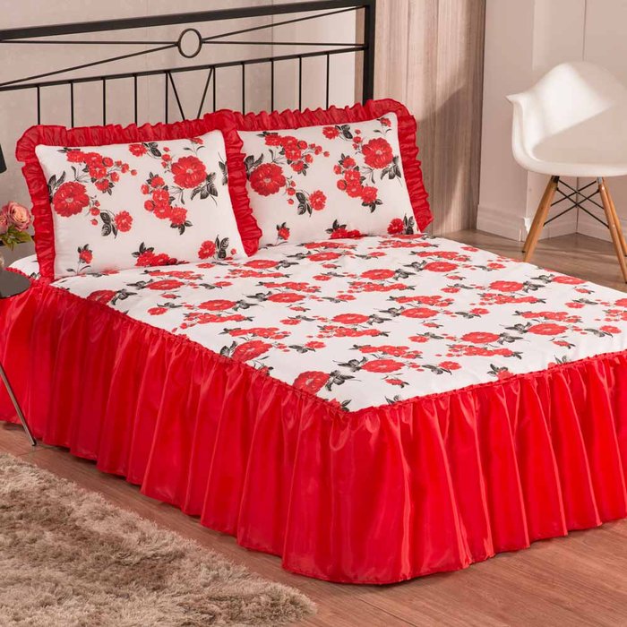 Colcha Casal Primavera 03 Peças Estampado com Babado Paulo Cezar Enxovais