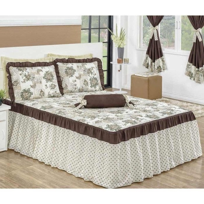 Colcha Casal Queen Encanto 03 Peças Acompanha Almofada Rolo - Tabaco