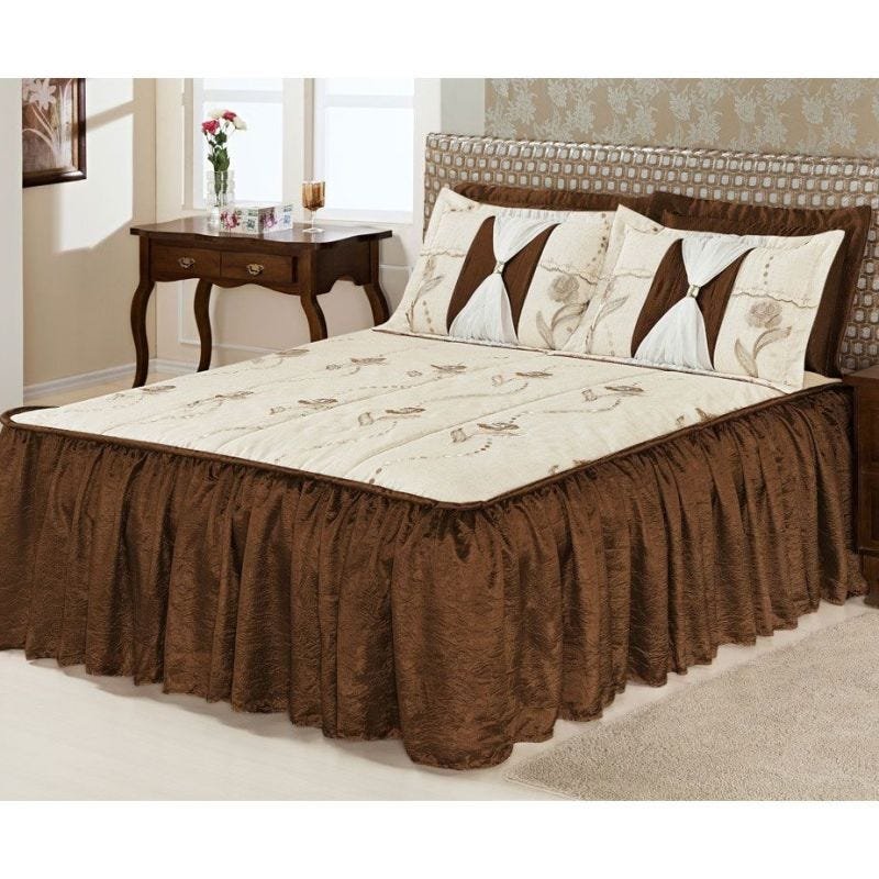 Colcha Casal Queen Serena 03 Peças - Tecido Rústico e Seda - Tabaco