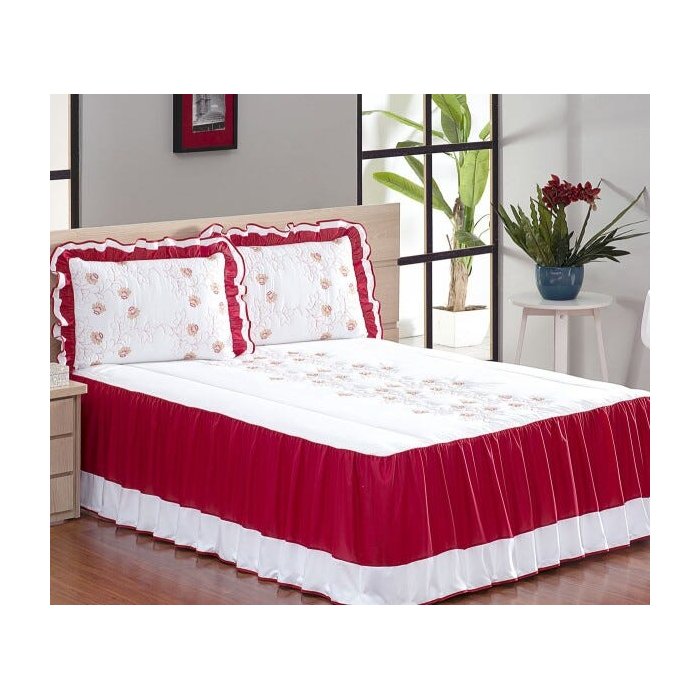 Colcha Casal Queen Tifanne Micro Fibra Bordada com Babado 5 Peças - Vermelha