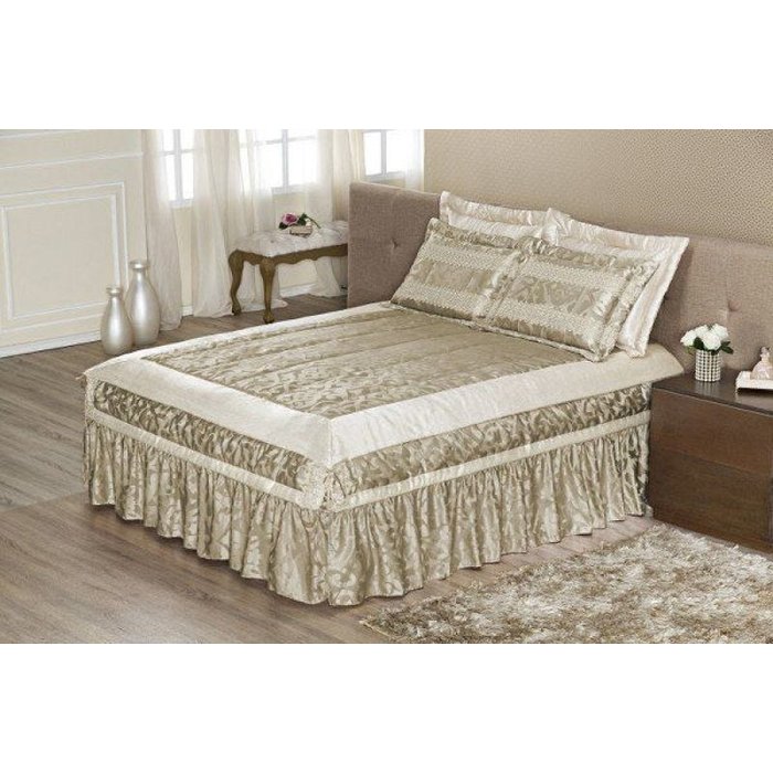 Colcha Casal Queen Vitoria 07 Peças Estampada Arabesco - Dourado