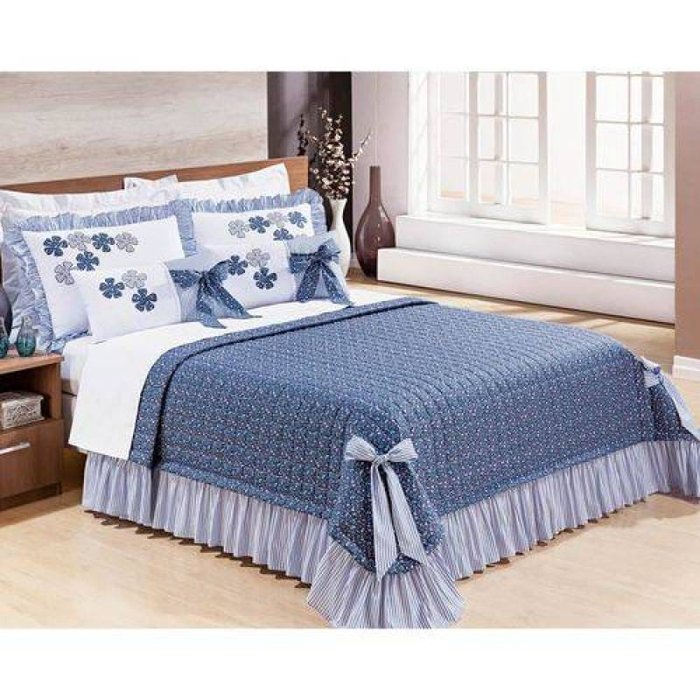 Colcha Casal Super King Doce Lar 05 Peças 100% Algodão com 02 Almofadas - Azul