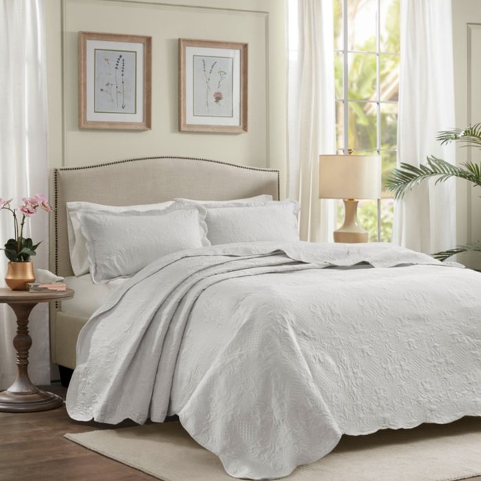 Colcha Cobre Leito Bouti Casal 3 Peças Dupla Face com 2 Portas Travesseiros Branco