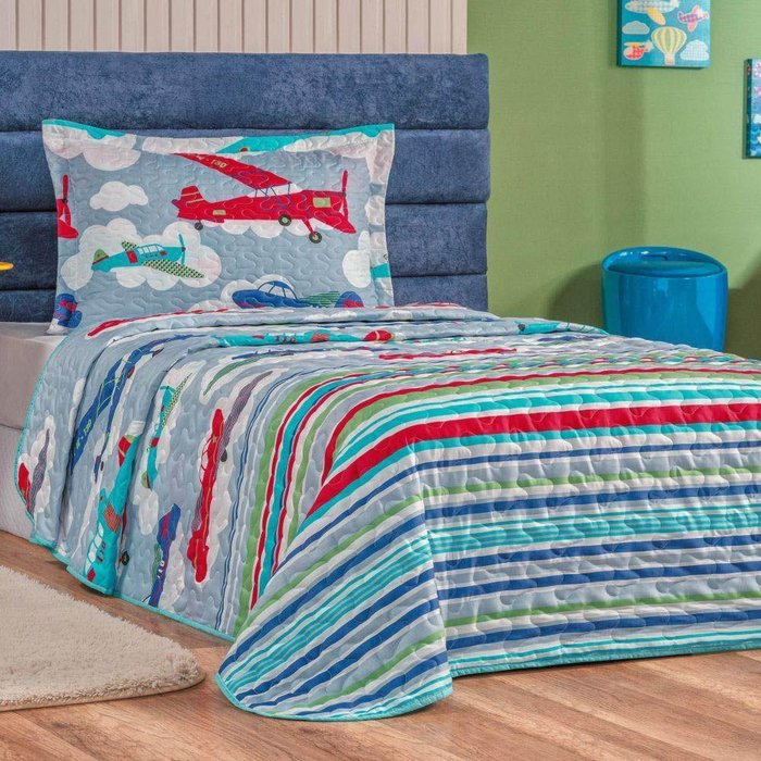 Colcha Cobre Leito Casa Show Solteiro 2 Peças - Avião