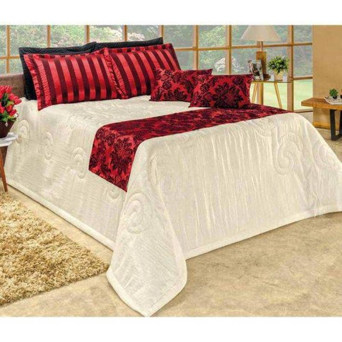 Colcha Cobre Leito Casal Queen Viena Vermelho - 06 Peças