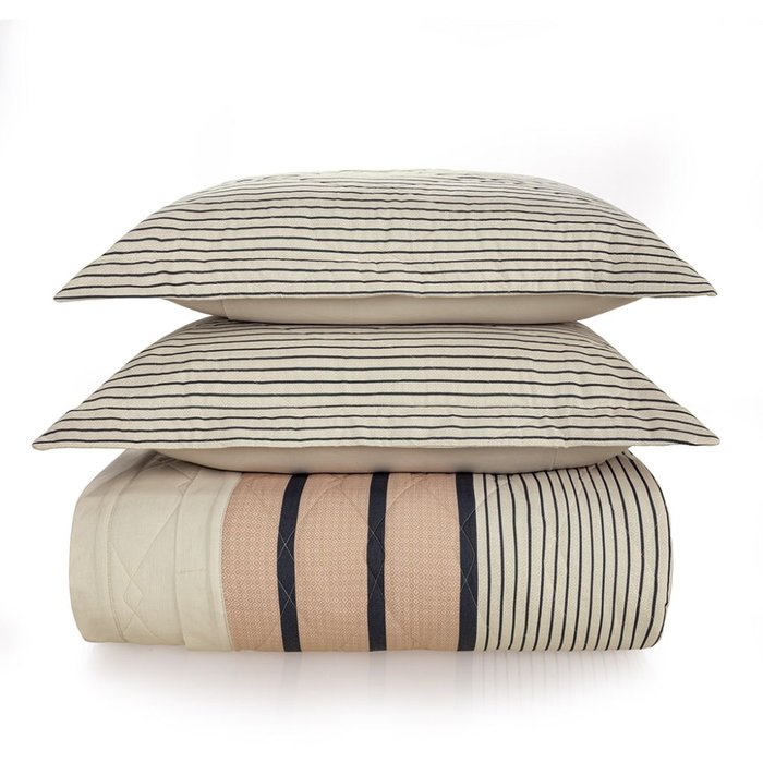 Colcha Cobre Leito King Lenine + 2 Portas Travesseiros 100% Algodão Karsten Estampa Marinho com Azul. A tendência da cama moderna traz estampas atemporais e tons que compõem facilmente com a decoração. O Cobre Leito da Karsten é um produto com duas funcionalidades, decorar e aquecer. Seu acabamento é matelassado na linha, possui cantos quadrados e estampas diferentes nos 2 lados, sendo considerado "duplaface", o que confere ao produto multiplas possibilidades de combinações é uma peça percebidamente Premium. Especificações Técnicas: :: Dupla Face (em uma face, estampa Listras Cinza com Rosé) :: 1 Cobre leito (King - 290 x 255cm) :: 2 Capas de travesseiro matelassada com 3 abas de 4cm (50 x 70cm) :: Cores: Cinza com Rosé :: Estampa: Lenine :: Antialérgico :: Antipilling (não dá bolinha) :: Composição: Tecido 100% algodão e manta em fibra siliconada 100% poliester. :: Tecido:Percal 180 fios :: Tecnologia percal soft. :: Marca: Karsten Fabricado no Brasil
