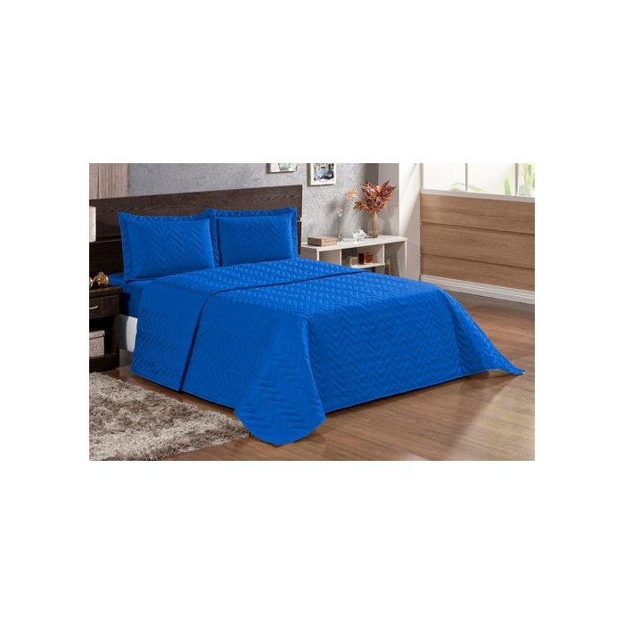 Colcha Cobre Leito Pratic Casal King Kit 3 Peças:Azul