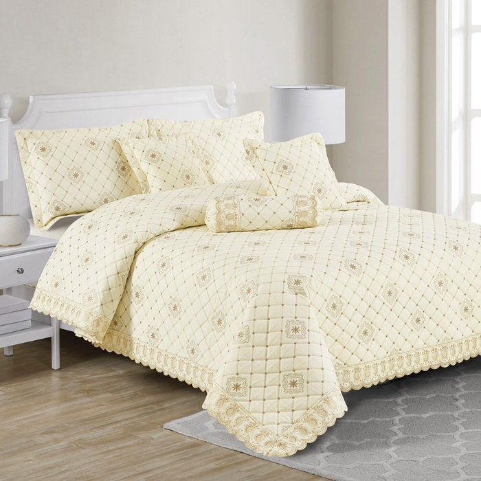Colcha Cobre Leito Royalle King Size 6 Peças 100% Algodão Percal 200 Fios Almofada Rolinho Vanilla Vanilla