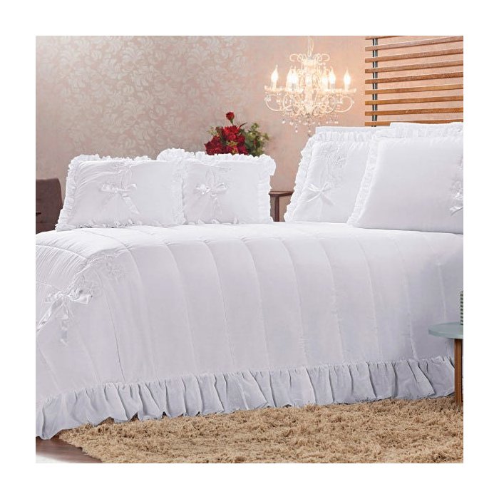 Colcha de Cama Queen com Almofadas Bordadas 7 Peças Lua de Mel Branco