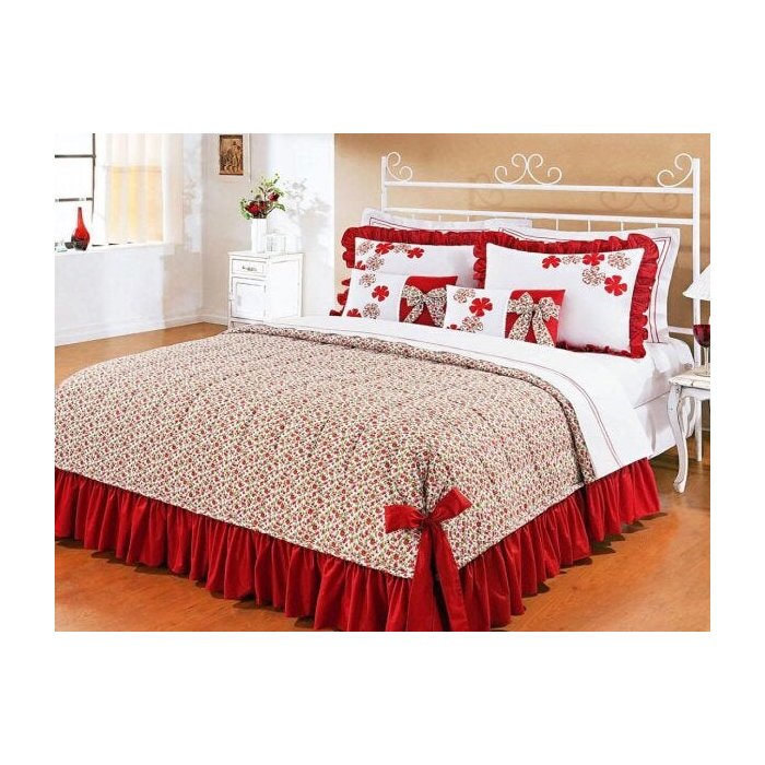 Colcha de Cama Super King Doce Lar Vermelho em Algodão 150 fios com 07 peças - Colcha Doce Lar