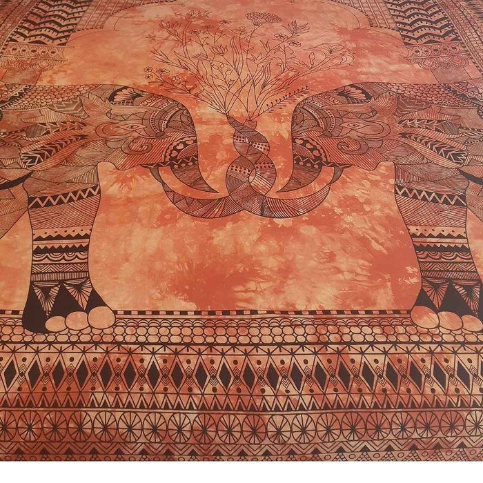 Colcha Indiana 100% Algodão (Modelo 106) Colcha Indiana coloridas e perfeitas para dar alegria e charme ao seu ambiente. As colchas indianas possuem estampas variadas com imagens de mandalas, elefantes, camelos, flores, flores de lótus, etc. Possuem um charme único e um toque artesanal para deixar seu ambiente mais aconchegante. Podem ser usadas em camas, sofás, poltronas e até mesmo para fazer painéis de parede. Material: 100% Algodão Cor: Laranja e Preto Largura: 210cm Altura: 230cm Origem: Índia O produto é artesanal, fabricado e importado da Índia e por isso torna-se quase único apresentando pequenas variações. *Os produtos podem apresentar pequenas variações de cor, tonalidade e brilho: produto artesanal. **Podem ter pequenas variações em seu tamanho: produto artesanal. ***Podem ter pequenas variações em seu peso: produto artesanal. ****Produtos tingidos: CUIDADO ao lavar, pois são artesanais e tingidas manualmente sem interferências químicas para adesão. Lave SEPARADAMENTE pois existe a possibilidade de soltar tinta em sua lavagem e manchar peças que estejam unidas.