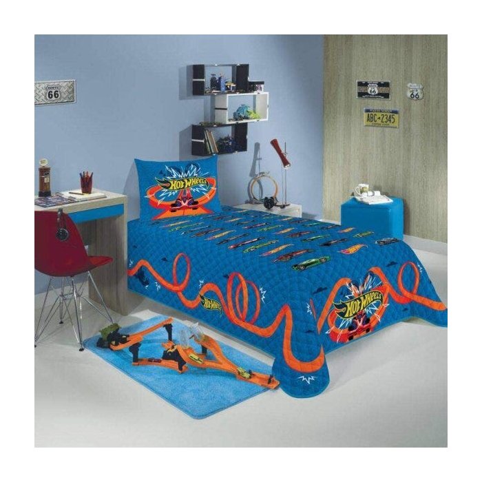 A colcha matelassê da coleção Hot Wheels ilustra incríveis carros, além de uma radical pista de corrida, em meio a elementos que remetem a marca. Em tons de azul, vermelho, amarelo, laranja e verde, possui um tecido de qualidade, fácil de lavar, com secagem rápida e que fica mais macio a cada lavagem sem perder a intensidade das cores. Com exclusivo acabamento matelado com costuras trazendo ainda mais riqueza de detalhes a peça, é perfeita para decorar e trazer personalidade ao quarto da garotada!