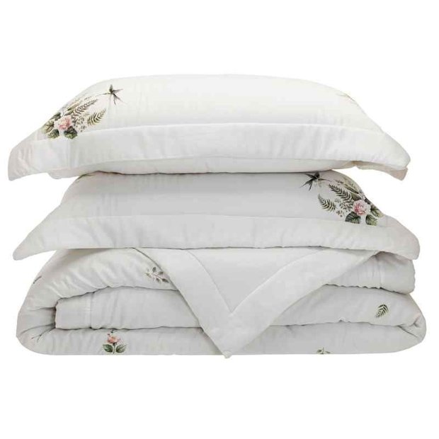 A belíssima composição de Pierre expressa um belo caimento na cama, com elementos em florais e pássaros adornam esse magnífico conjunto, valorizando a estética da peça.