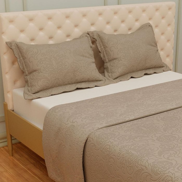 Colcha King Microfibra Bege Com 2 Porta Travesseiros