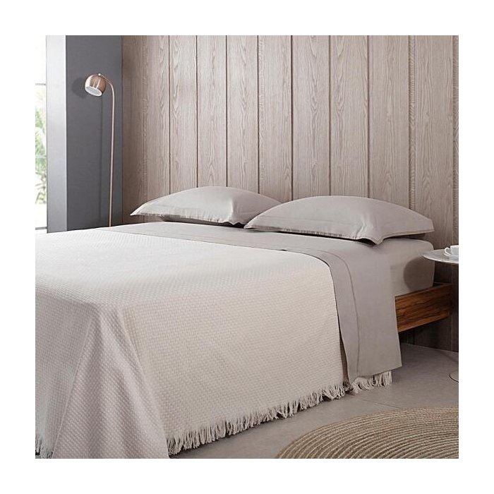 Colcha Manta Para Cama Sofá In Design Buddemeyer King Franja - Bege 1497