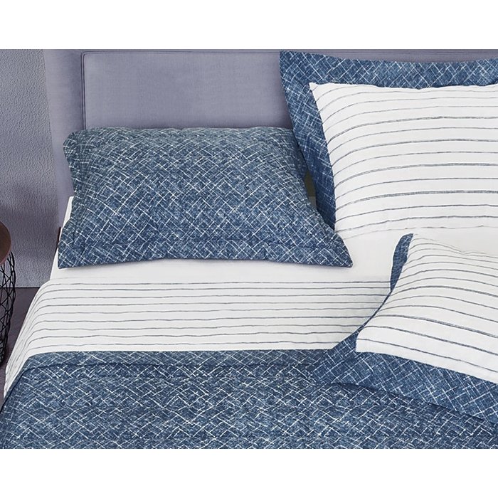 Tenha uma cama elegante e confortável com o Cobre-leito Dupla Face Solteiro Buddemeyer Vegas. Sua composição explora elementos simples com texturas sofisticadas, formas geométricas e listrados irregulares, dando movimento e riqueza ao desenho. Os diferentes tons de jeans, as texturas e o alto contraste, entre claro e escuro, trazem modernidade à peça.