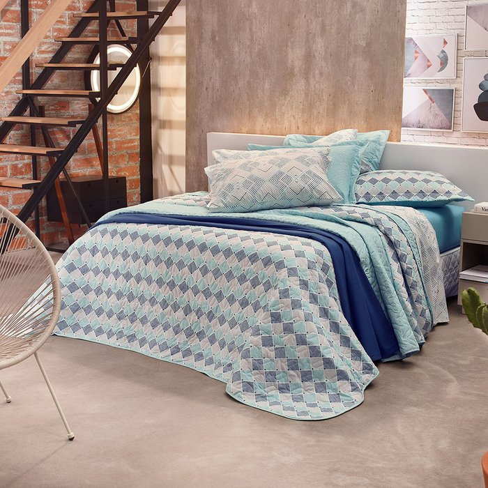 Colcha Matelassê - Casal - 150 Fios - Dupla Face - Philip - C/ Porta Travesseiro - Santista