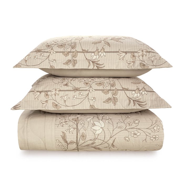 Colcha Matelasse Casal Bege Claire Karsten Percal 180 Fios 3 peças 100% algodão