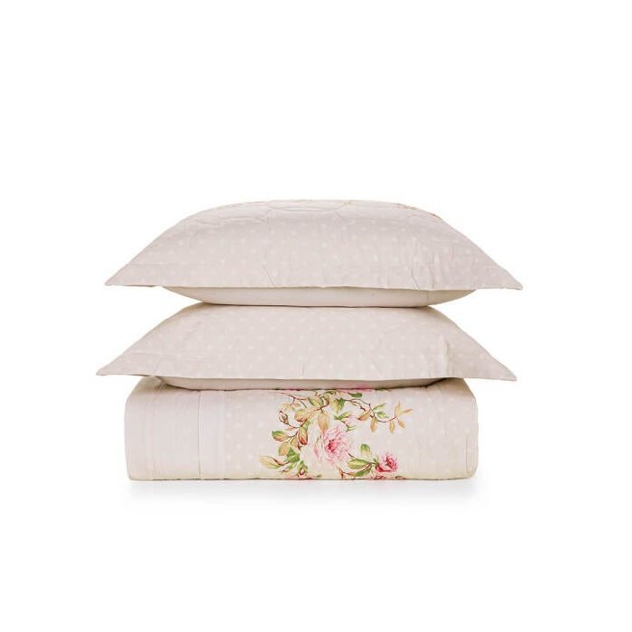 Colcha Matelasse Casal Bege Ive Karsten Percal 150 Fios 3 peças 100% algodão