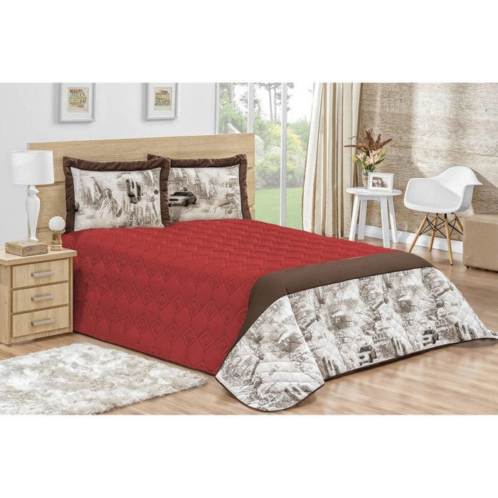 Colcha New York Casal Queen 5 Peças Cobre Leito Estampado vermelho