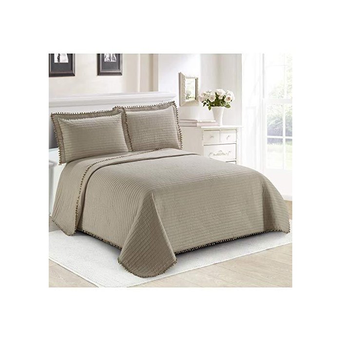 Colcha Pompom King Camesa 260x280cm Microfibra Bege