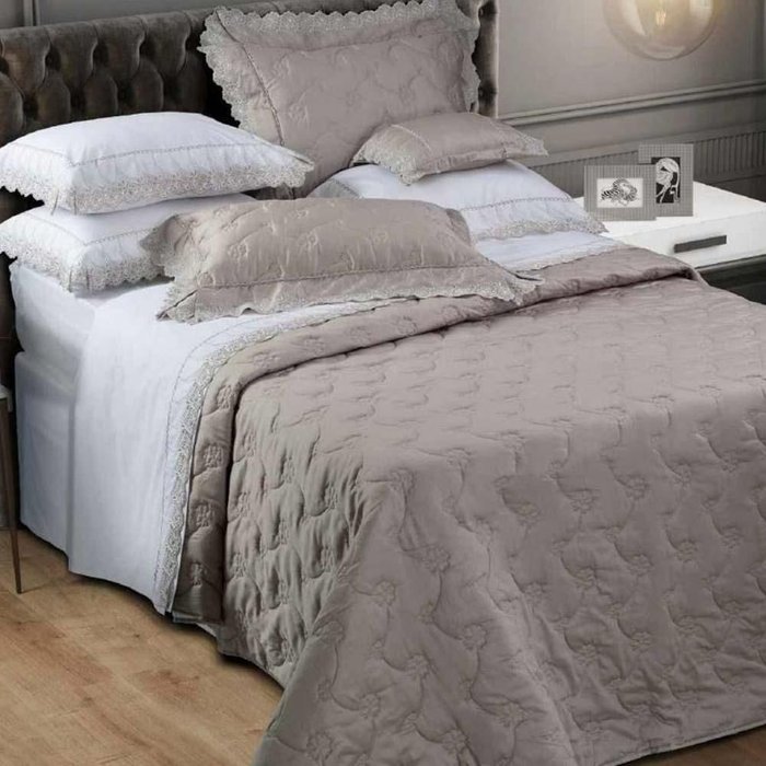 Colcha Solteiro com Almofada 230 Fios Manuela - Marken Fassi Bege