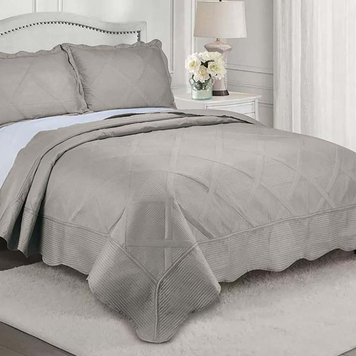 Confeccionada em tecido 100% poliéster de 70g/m² gramatura com enchimento robusto de 160g/m² de gramatura também em poliéster. A colcha Egeu é caracterizada pela sua textura com relevos em formas geométricas, finalizando com outra padronagem nas bordas e nas abas do porta-travesseiro. Disponível em 5 cores em uma paleta de tons suaves e elegantes complentando um enxoval sofisticado e de alta qualidade. O kit é composto por colcha com barrado geométrico em toda a borda e porta-travesseiro com 3 abas e 5cm na padronagem do barrado. Perfeita para deixar sua cama muito mais bonita e arrumada! Foto meramente ilustrativa. Contém: